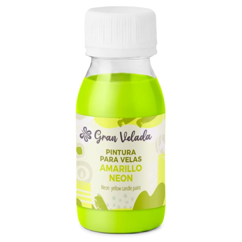 A tinta para velas que podes comprar na nossa loja online foi especialmente formulada para pintar superfícies de cera. Apresenta-se em formato líquido e está disponível numa vasta paleta de cores: metalizadas, nacaradas, neutras e em tons néon. Em particular, o amarelo néon destaca-se pelo seu tom vibrante, vistoso e luminoso — ideal para designs arrojados, modernos e muito personalizados.
