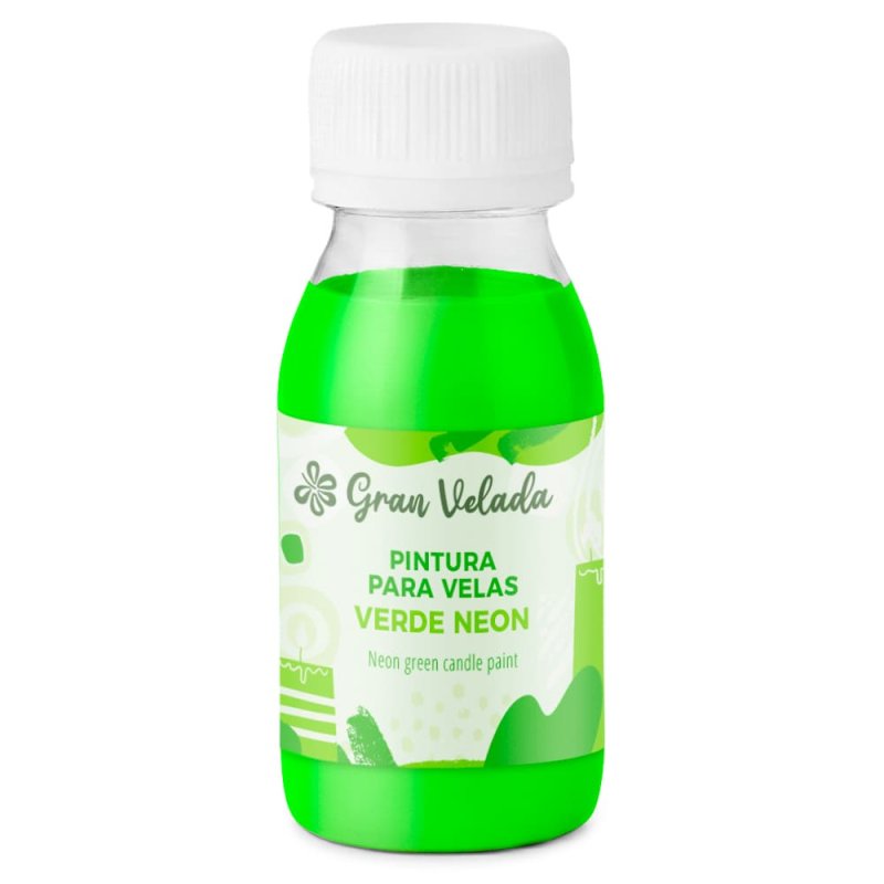 A tinta para velas que podes comprar na nossa loja online foi especialmente formulada para pintar superfícies de cera. Apresenta-se em formato líquido e está disponível numa vasta paleta de cores: metalizadas, nacaradas, neutras e em tons néon. Em particular, o verde néon destaca-se pelo seu tom vibrante, vistoso e luminoso — ideal para designs arrojados, modernos e muito personalizados.