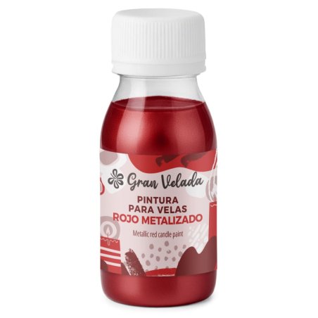 Tinta para velas vermelho metalizado, ideal para pintar superfícies de cera. Com ela poderás decorar as velas e candeeiros que fizeres em casa. A tinta para velas que podes comprar na Gran Velada tem formato líquido e é muito fácil de usar. Só tens de agitá-la e aplicá-la com um pincel ou esponja sobre a superfície que queres pintar. Seca rapidamente. Também podes usar um molde para obter criações totalmente personalizadas. O seu acabamento metalizado dá um toque elegante e luminoso às tuas velas. Compra facilmente na nossa loja online!