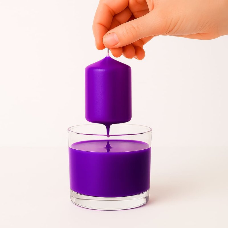 - Se a vela for escura, repita o processo após a secagem para um acabamento uniforme.