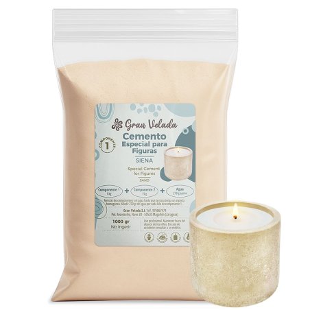 Na Gran Velada encontras cimento para figuras na cor siena. Este cimento, também conhecido como betão cor areia, tem uma composição especial para figuras e objetos decorativos, com uma granulação mais fina do que o cimento convencional. É um cimento para fazer trabalhos manuais de forma cómoda em casa, composto por dois elementos: cimento e um componente especial, que conferem às figuras um acabamento liso e sem imperfeições. Para preparar o cimento para trabalhos manuais da Gran Velada, basta misturar os dois componentes com água. A proporção aproximada é: 1 kg de cimento + 15 g do componente 2 + 270 g de água.