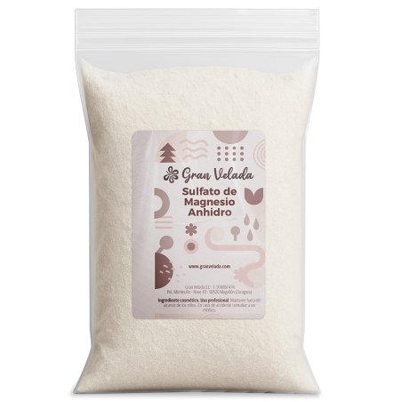Na Gran Velada pode comprar sulfato de magnésio anidro, um sal inorgânico que contém magnésio, enxofre e oxigênio, e é usado principalmente como fertilizante na jardinagem e na agricultura. É um sólido cristalino branco, solúvel em água.