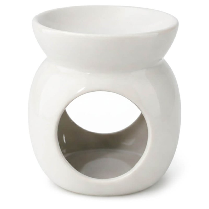 Queimador de essências branco, muito prático e decorativo, fabricado em cerâmica e concebido para aromatizar espaços através do calor. O seu acabamento é elegante, minimalista e funcional. Para utilizar, basta colocar uma vela de chá no interior e verter um pouco de água na concavidade superior, adicionando algumas gotas de óleo essencial ou essência aromática. O calor da vela ajudará a difundir o aroma pelo ambiente. Permite também o uso de cera perfumada sólida ou pequenas figuras de cera compatíveis com recipientes resistentes ao calor.