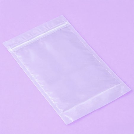 Esta bolsa doypack com zíper é fabricada em polipropileno transparente e possui base estável e fecho zip, permitindo abrir e fechar a embalagem de forma cómoda e segura. É uma opção prática para o acondicionamento de sais de banho, misturas aromáticas, pós, grânulos e diferentes elaborações DIY.