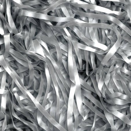 As lascas de papel para recheio lhe servirão para fixar, assentar e proteger os produtos que incluas nas cestas de presente, pacotes, caixas ou baús. Também de ajudar a preservá-los em bom estado, lhe ajudarão a decorar os pacotes. Neste caso, as lascas de papel são prateadas, tem brilho e são metalizadas.