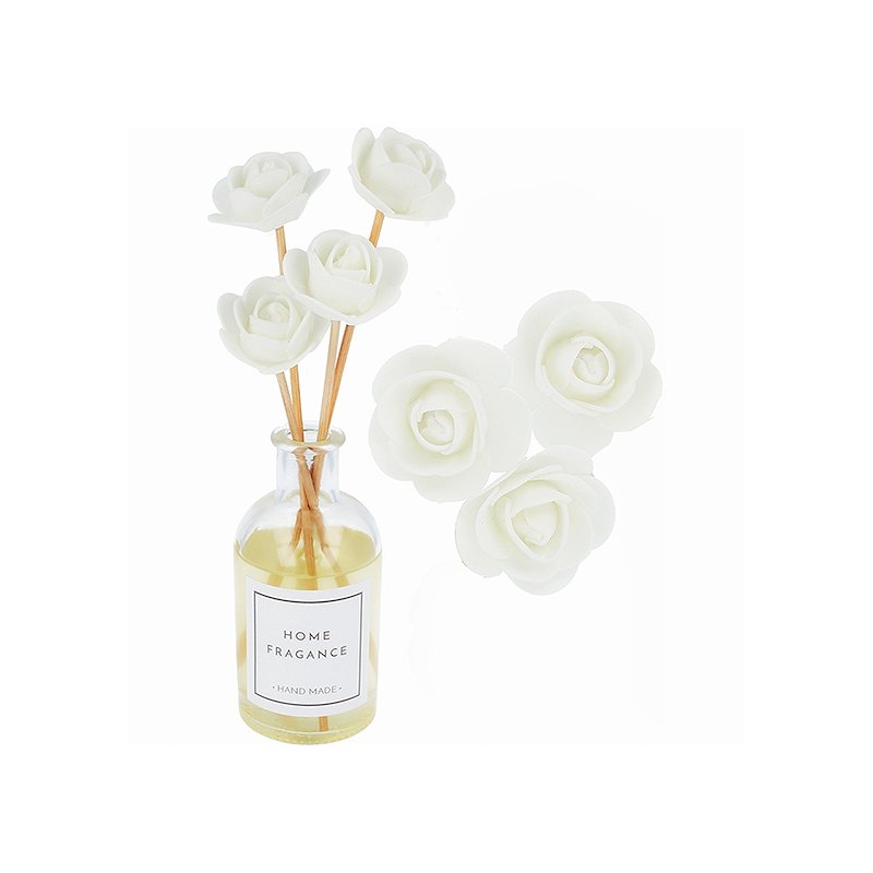 Com as flores de difuso de aroma para mikados, dará um toque de elegância e distinção aos seus ambientadores. Trata-se de varetas de rattan permeáveis, terminadas com uma pequena rosa branca de espuma absorvente Ao entrar a vareta em contacto com a essência, se molhará e o perfume subirá até a flor. Assim a essência será absorvida pela flor, mantendo o aroma durante mais tempo. Inclui tanto a vareta como a flor.