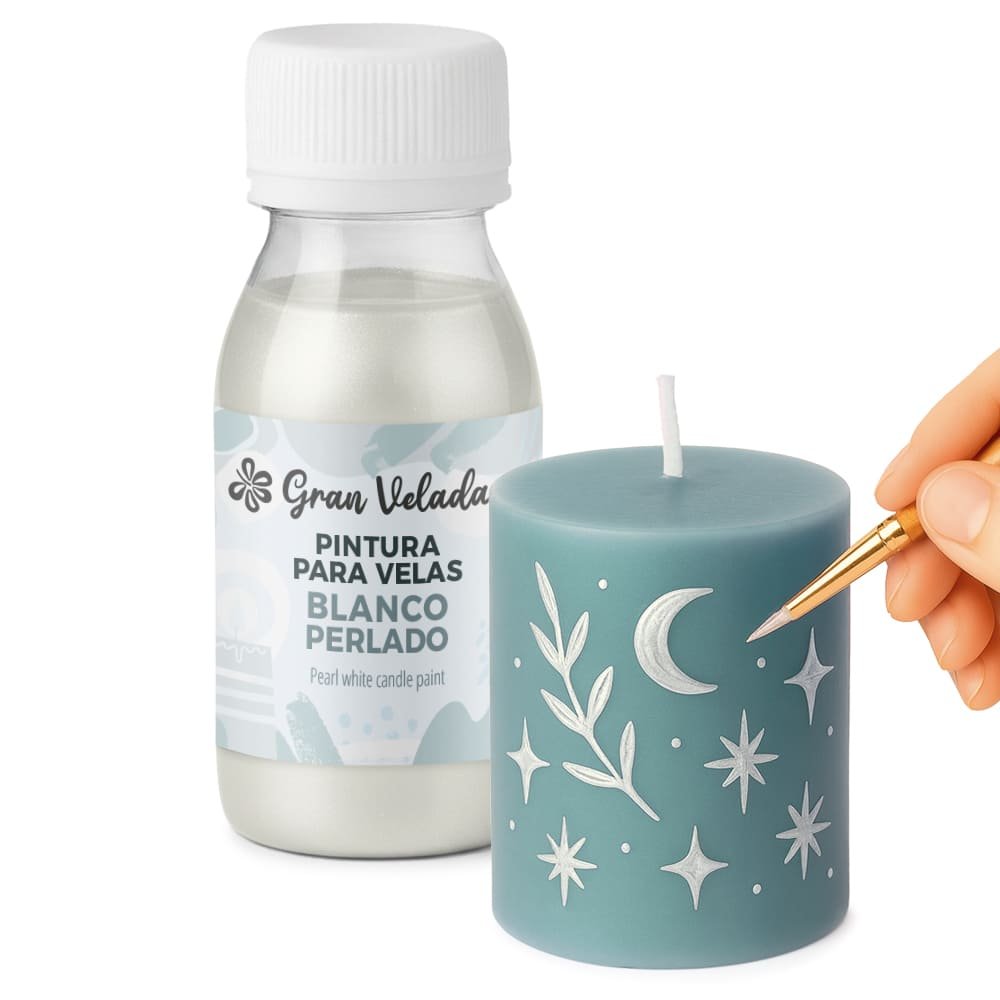 Tinta para velas branco, pérola, ideal para pintura em superfícies de cera. Com ela poderá decorar as suas velas e luminárias que fizer em casa. A tinta para vela que poderá comprar na Gran Velada tem um formato líquido e é muito fácil de usar. Somente precisa agitá-lo e espalhá-lo com um pincel ou uma esponja na superfície que deseja pintar. É de secagem rápida. Também poderá se ajudar com um modelo de estêncil para obter criações totalmente personalizadas. A tinta para velas é uma das formas mais fáceis de renovar a imagem das suas velas que tiver em casa. Obtenha facilmente a sua tinta para velas através da nossa loja online! Colocamos à sua disposição uma ampla paleta de cores.