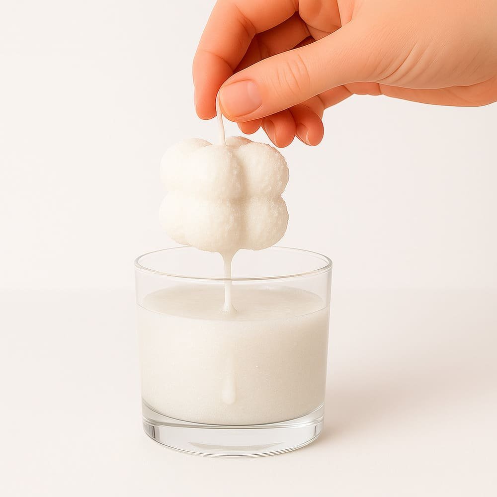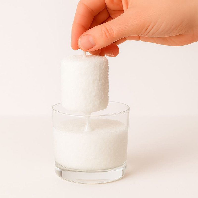 2. Despeje o conteúdo do Snow Candle Wax no recipiente do Verniz para velas.