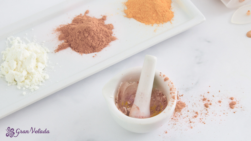 Para hacer el color idóneo para tu piel prepara la mezcla de pigmentos en un vasito o similar . Mezcla y machaca las partículas con alcohol hasta tener una mezcla uniforme. Ve añadiendo esta mezcla a la crema poco a poco y ve probando el tono en tu piel. ¡Es muy sencillo y conseguirás el tono perfecto!