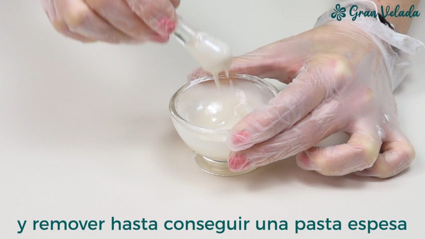 Incorporar un poco de glicerina vegetal y remover hasta conseguir una pasta espesa..