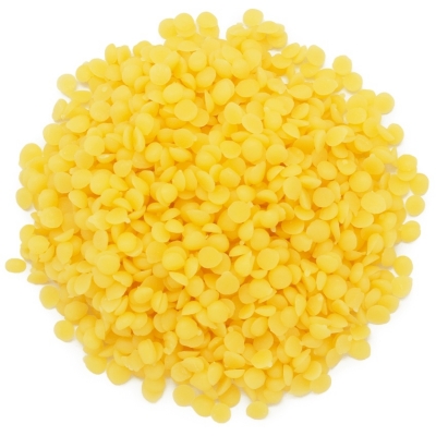 Esta cera de abeja amarilla en perlas se utiliza como emulsionante natural para hacer cosmética o para hacer velas. Se obtiene por fusión con agua caliente de las paredes de las celdillas de los panales y eliminación de los elementos extraños. No es irritante y presenta gran compatibilidad con la piel. Resulta un buen emoliente (imparte suavidad y sensación general de bienestar a la dermis).